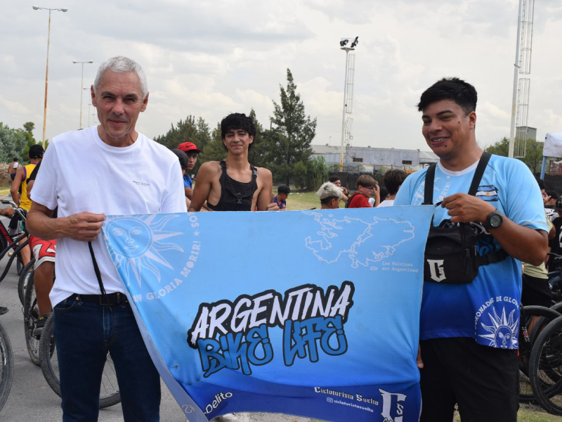 Durante el encuentro, el intendente Fabián Cagliardi participó del sorteo de una bicicleta entre todos los ciclistas presentes, sumando un momento especial a la jornada.