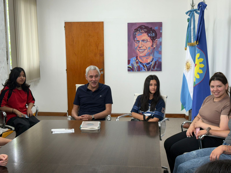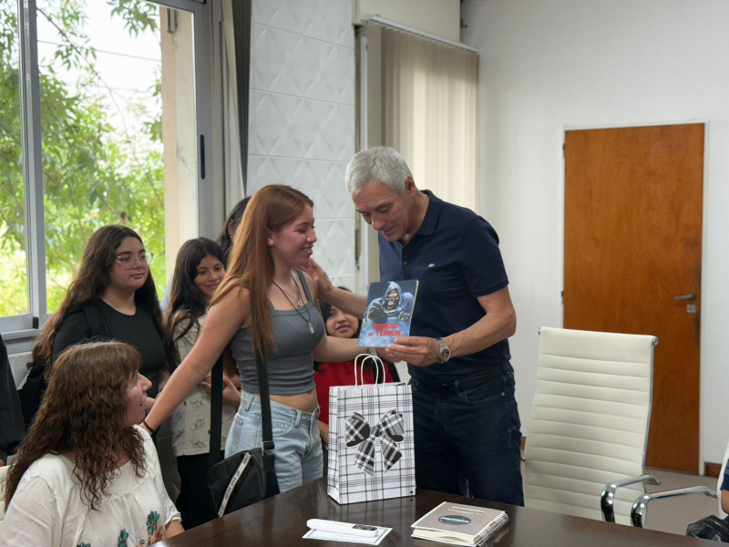 El intendente Fabián Cagliardi recibió esta mañana en el despacho de Intendencia a alumnos y alumnas de la Escuela Secundaria N°1, quienes presentaron el libro de cuentos de terror "Berisso de Terror" que escribieron como parte de un proyecto colectivo con la Escuela de Arte de Berisso.